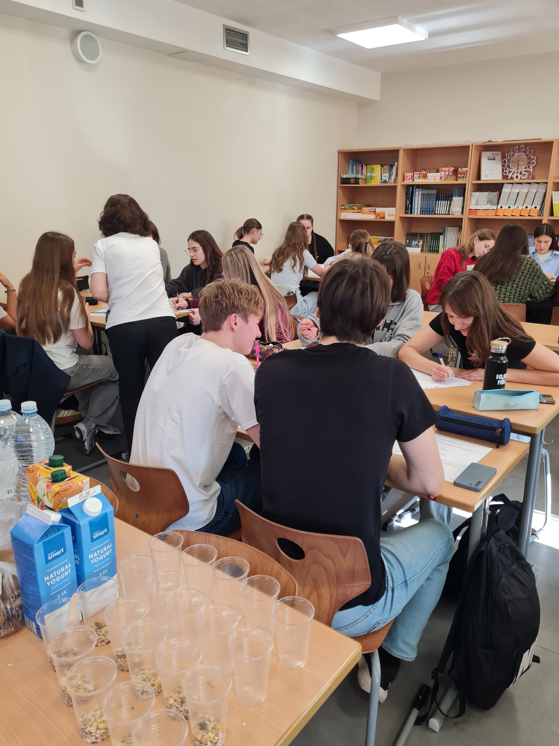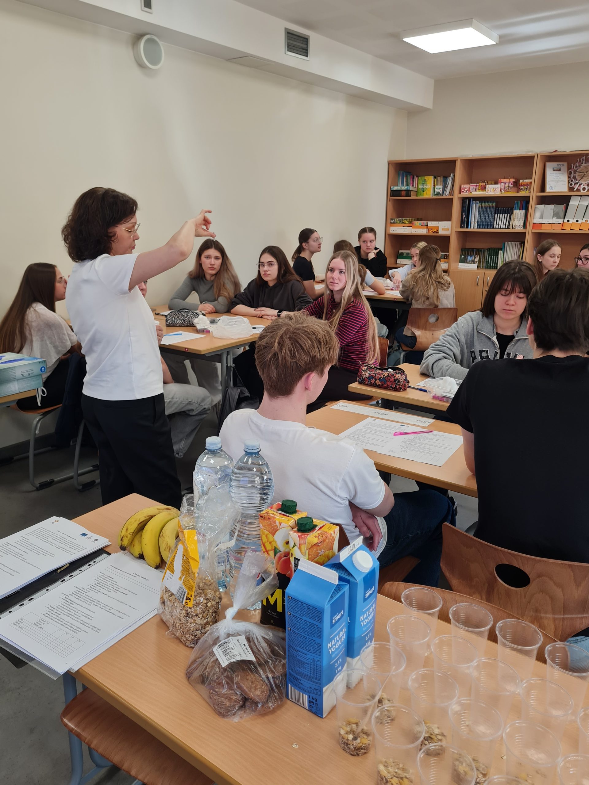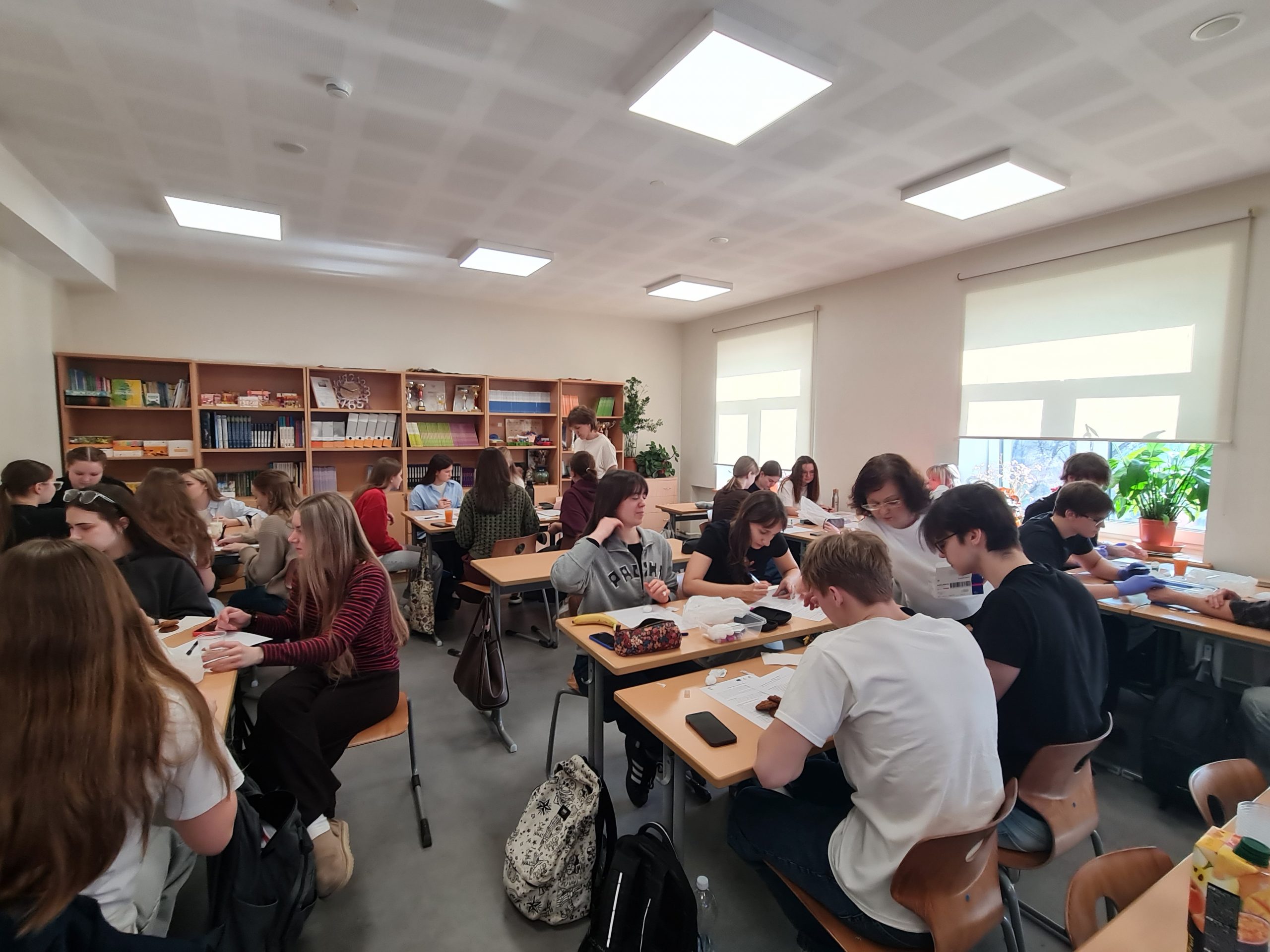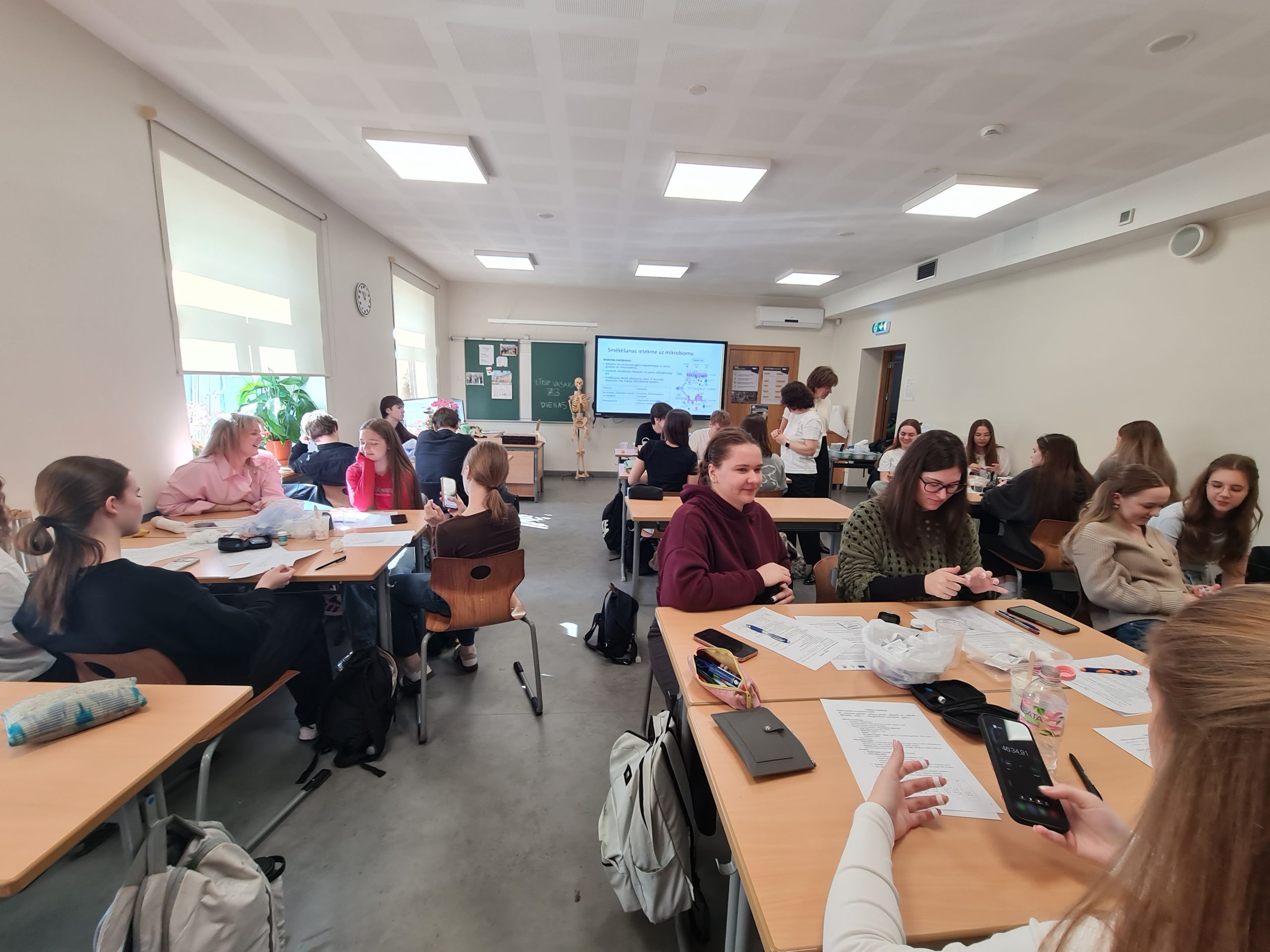 Interesants bija praktiskais eksperiments, kura sākumā katram dalībniekam tiek nomērīts glikozes līmenis kapilārajās asinīs. Pēc tam viņi lietoja uzturā vienādu daudzumu ogļhidrātu, bet dažādu pārtikas produktu veidā – piemēram, sulu, šķiedrvielu cepumus, jogurtu ar šķiedrvielām vai banānu. Tālāk glikozes līmenis tika atkārtoti mērīts ik pēc 15 minūtēm, lai novērotu, kā dažādi produkti ietekmē cukura līmeni asinīs. Papildus skolēni apguva higiēnas un dezinfekcijas prasības.