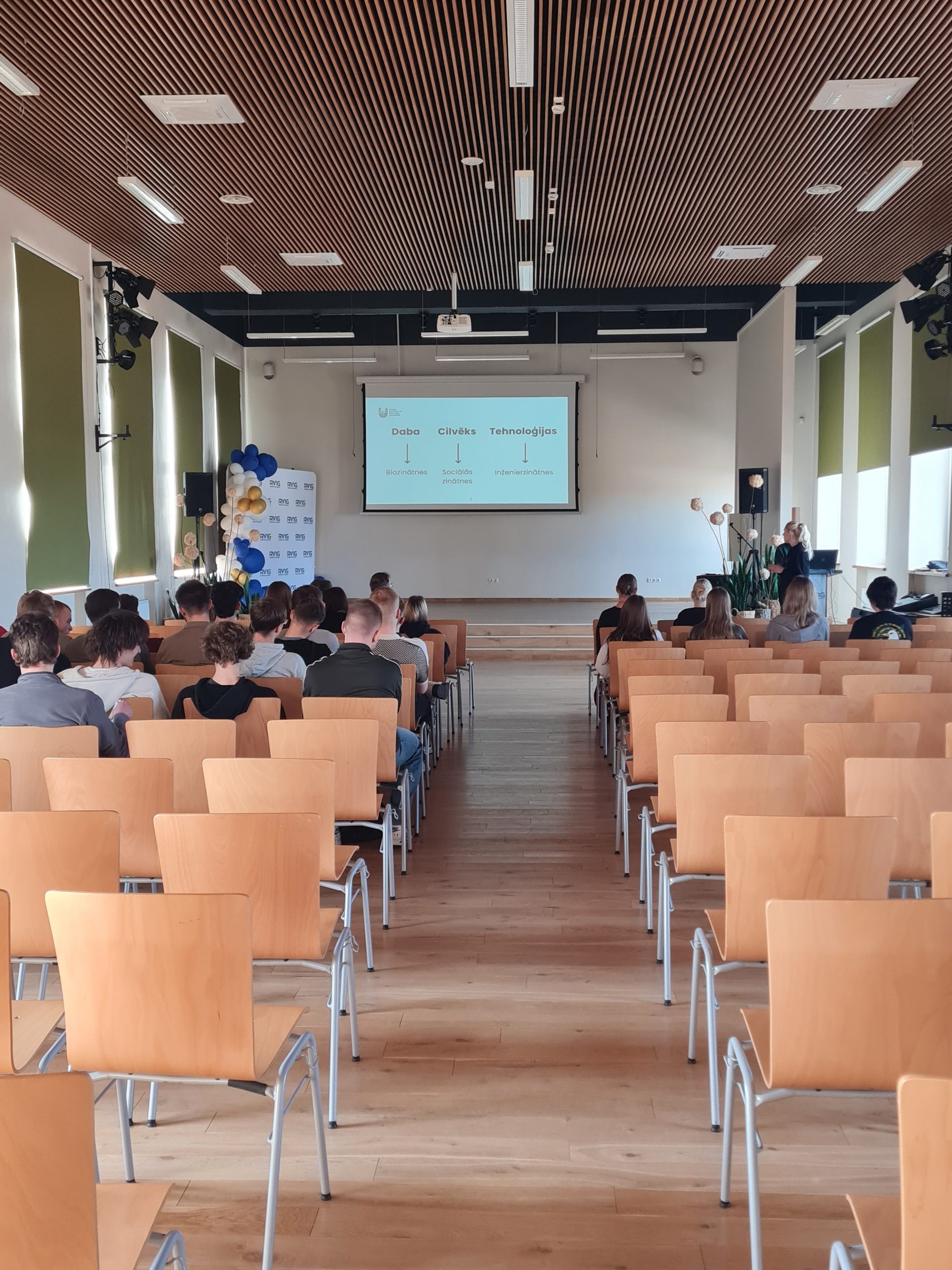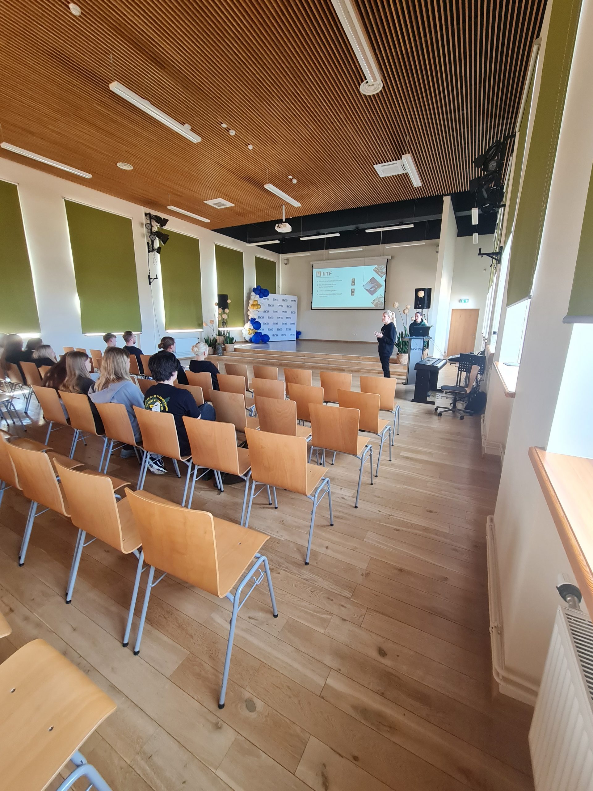 12.b un 12.c klases skolēni klausījās prezentāciju par studiju programmām, studiju vidi, ārpusstudiju aktivitātēm, uzņemšanas kārtību un nosacījumiem,  studentu sadzīvi, stipendijām u.tml..