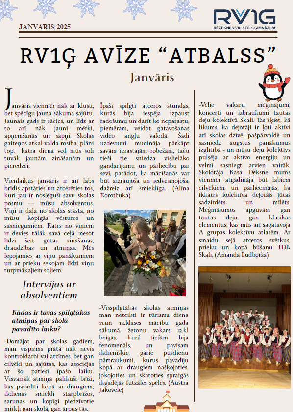 Skolas avīze Skolas avīze "Atbalss" Skolas avīze "Atbalss" Janvāra avīze 2026 Skolas avīze "Atbalss" Decembra avīze 2025 Skolas avīze "Atbalss" Novembra avīze 2025 Skolas avīze "Atbalss" Septembra avīze 2025 Skolas avīze "Atbalss" Septembris-oktobris Skolas avīze "Atbalss" Novembris Skolas avīze "Atbalss" Decembris Skolas avīze "Atbalss" Janvāris Skolas avīze "Atbalss" Februāris Skolas avīze "Atbalss" Marts Skolas avīze "Atbalss" Aprīlis Skolas avīze "Atbalss" Maijs-Jūnijs